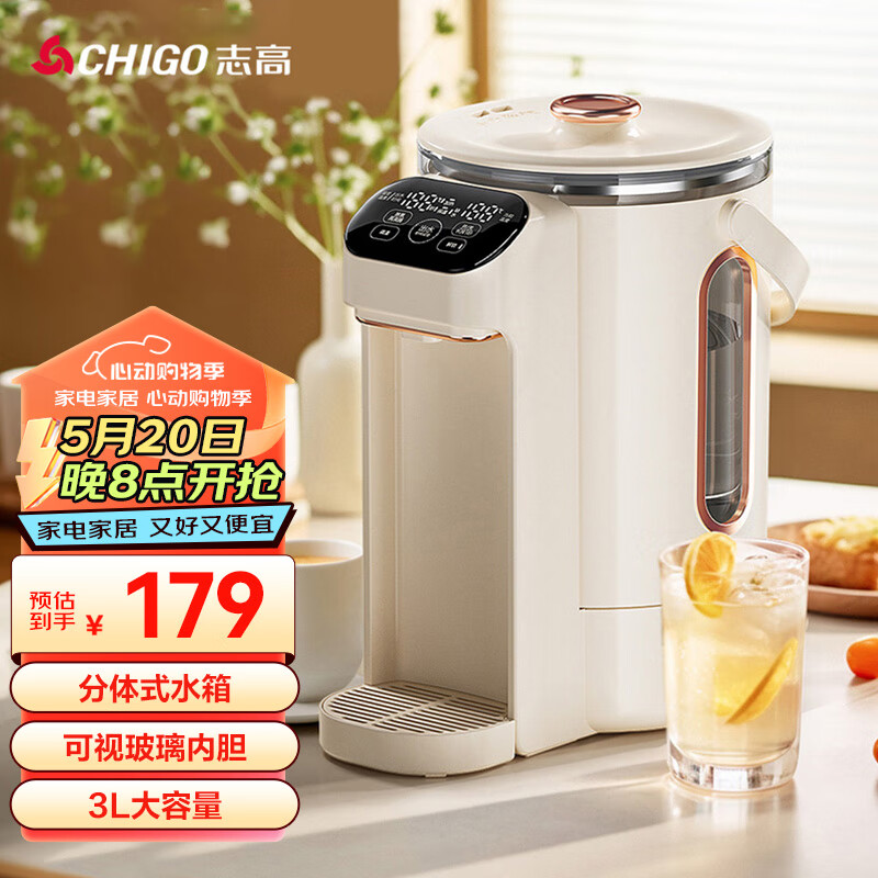 志高(CHIGO)电热水壶烧水壶电热水瓶烧水壶保温一体全自动恒温电热水壶3L大容量恒温水壶除氯多段保温DC-P831价格:179.00元!