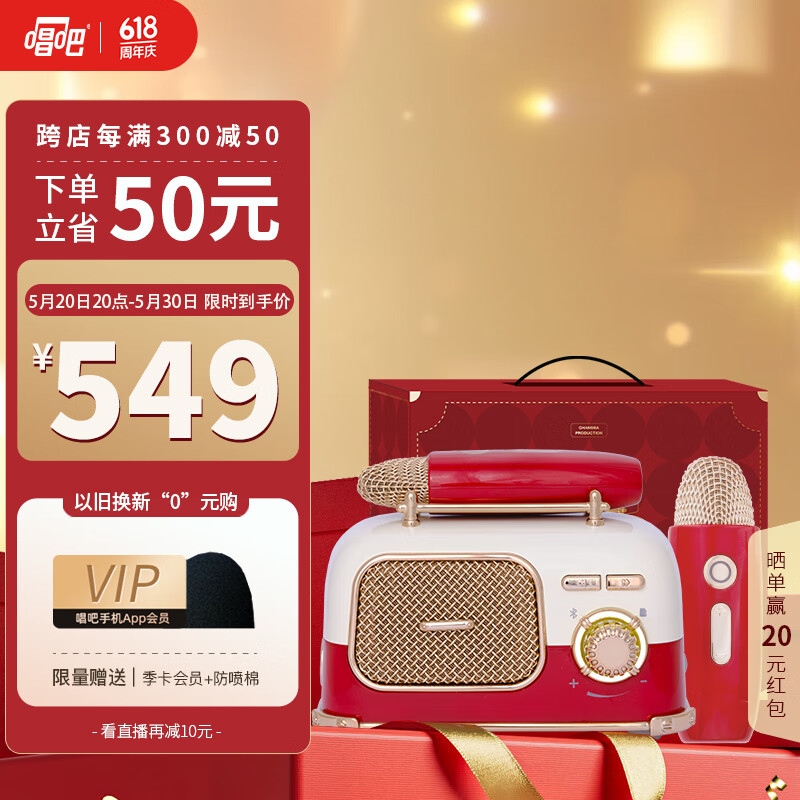 唱吧K歌音箱叮叮巴士L2蓝牙无线迷你麦克风音响户外k歌话筒音箱家庭ktv音响礼物祥瑞红双麦套装版价格:599.00元!