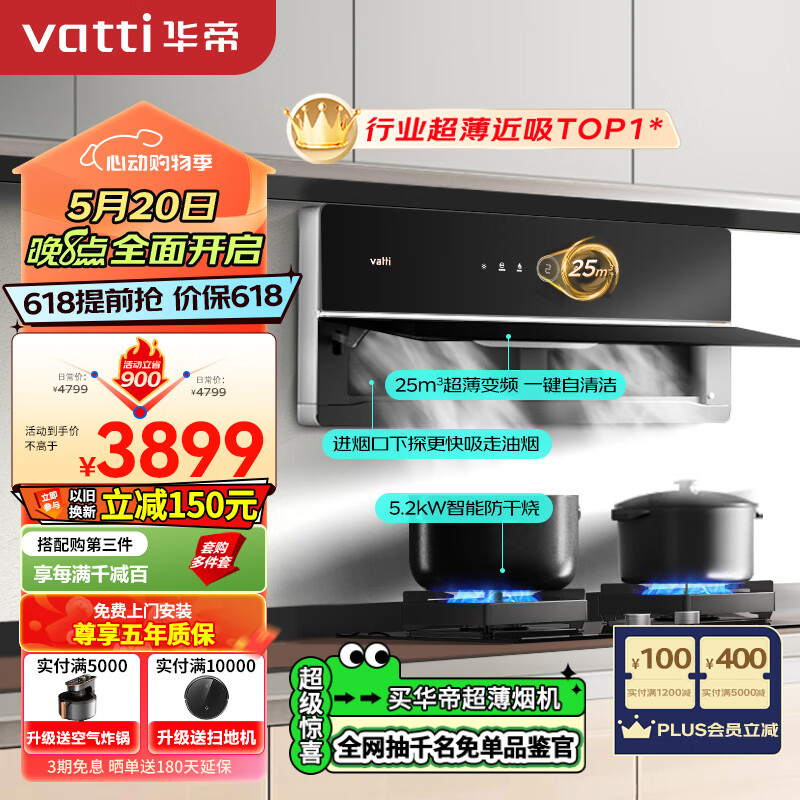 华帝(VATTI)抽油烟机超薄近吸理想家X6家用变频大吸力烟机防干烧燃气灶具烟灶套装25风量自动清洗i11210天然气价格:4599.00元!