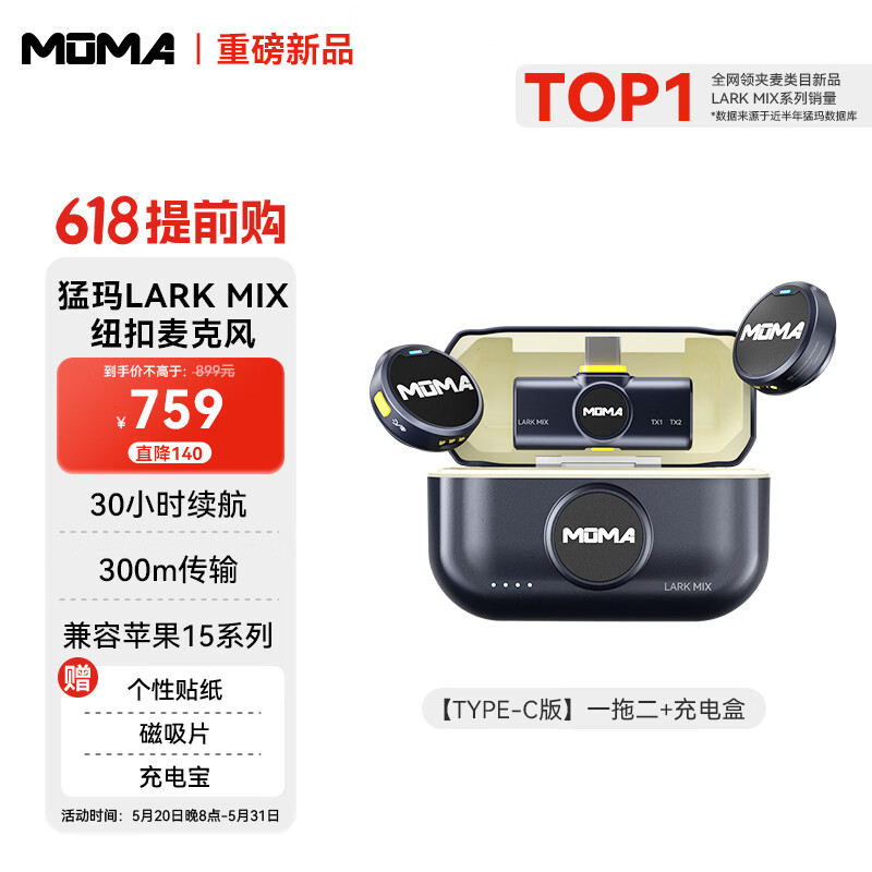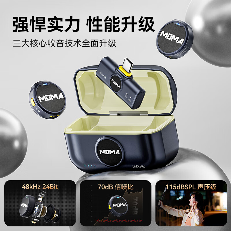 猛玛(MOMA)Lark Mix 一拖二无线领夹麦克风猛犸手机直播vlog户外采访微小型纽扣收音麦Type-C版黑色价格:759.00元!