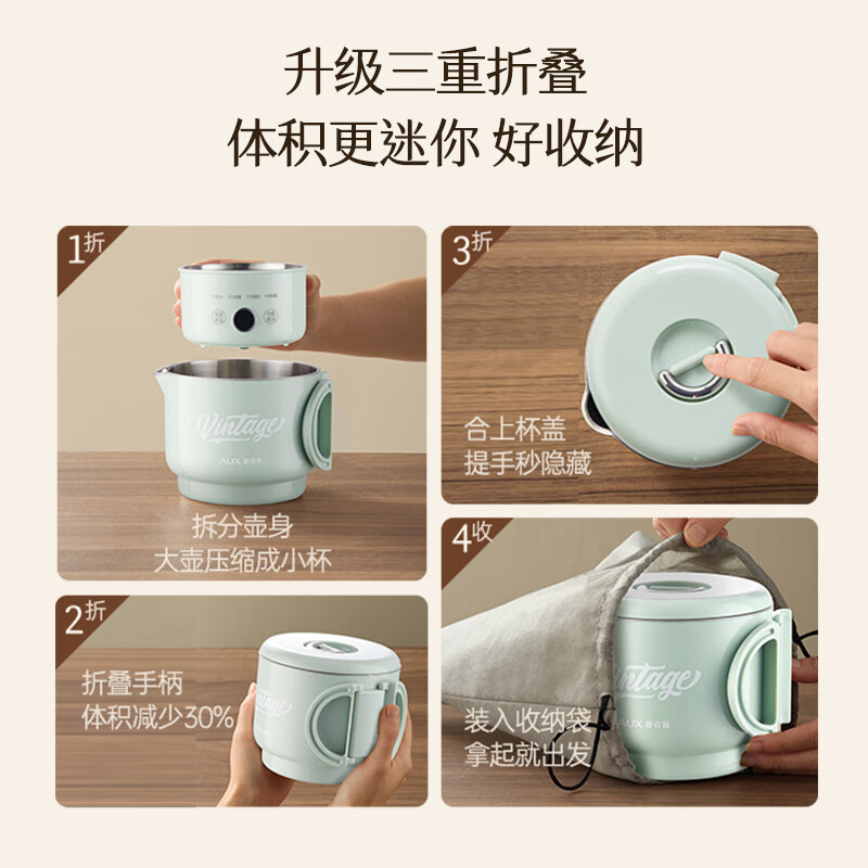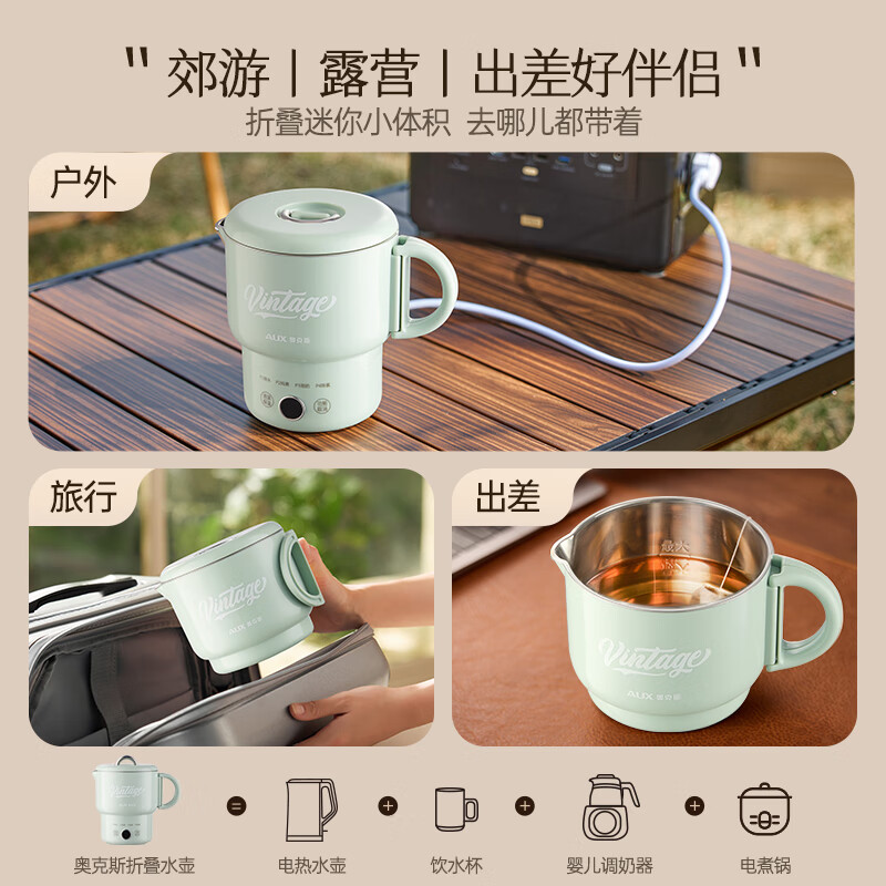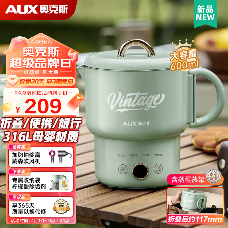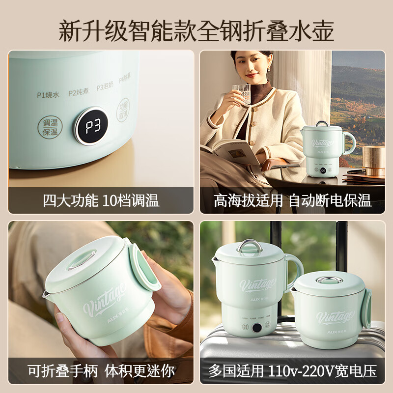 奥克斯(AUX)便携式烧水壶 316L不锈钢折叠水壶第三代智能旅行电水壶 家用烧水杯养生冲奶保温 AAS-05ASBP02 蒸蛋蒸架款 0.6L价格:279.00元!