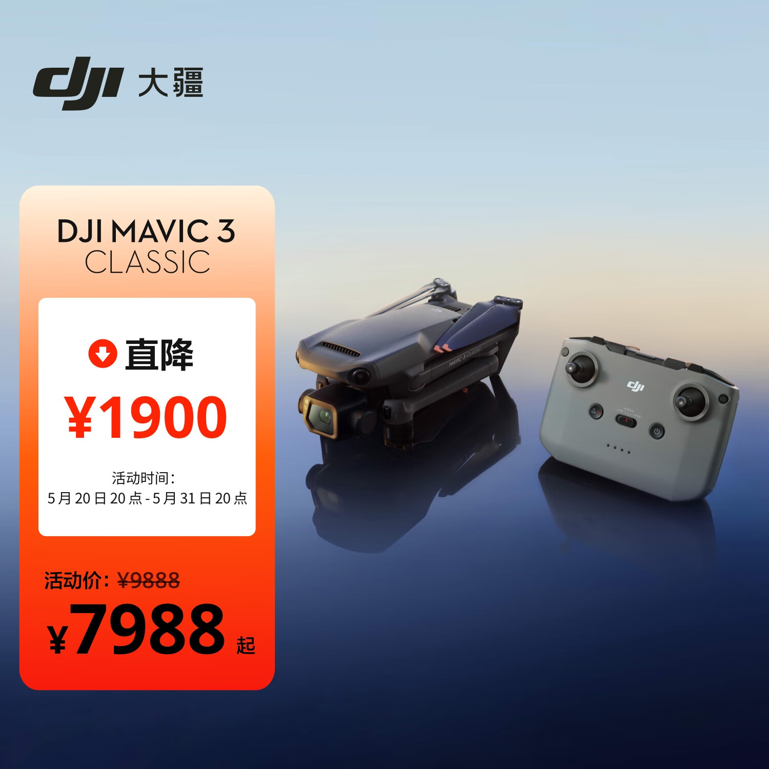 大疆 DJI Mavic 3 Classic (DJI RC-N1) 御3经典版航拍无人机 哈苏相机 智能返航 遥控飞机+128G内存卡价格:8082.90元!