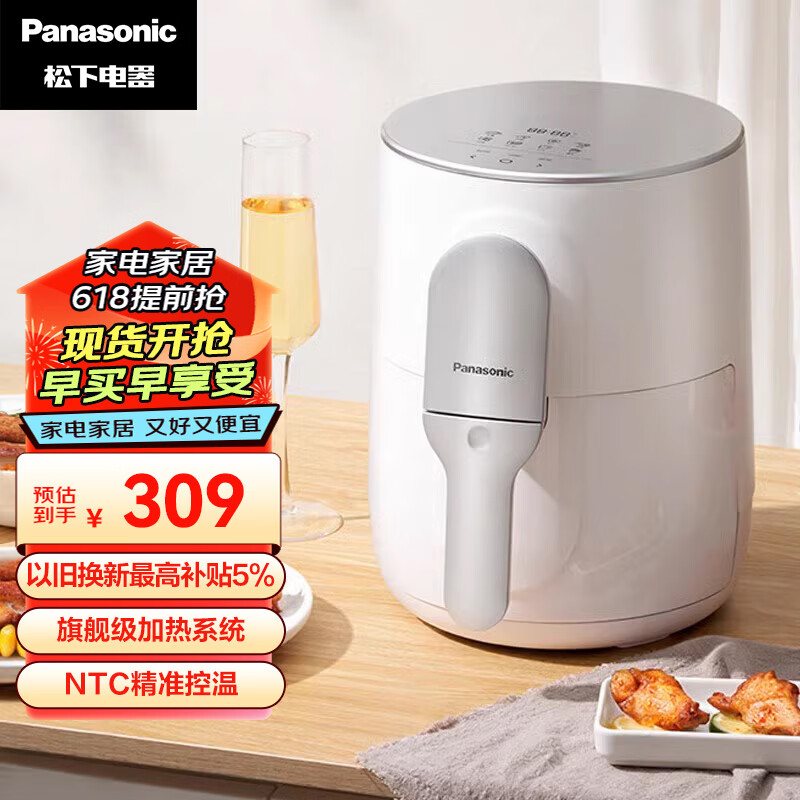 松下(Panasonic)多功能家用不用翻面健康低脂双屏显示 4L大容量 空气炸锅NF-HC100-W价格:289.00元!