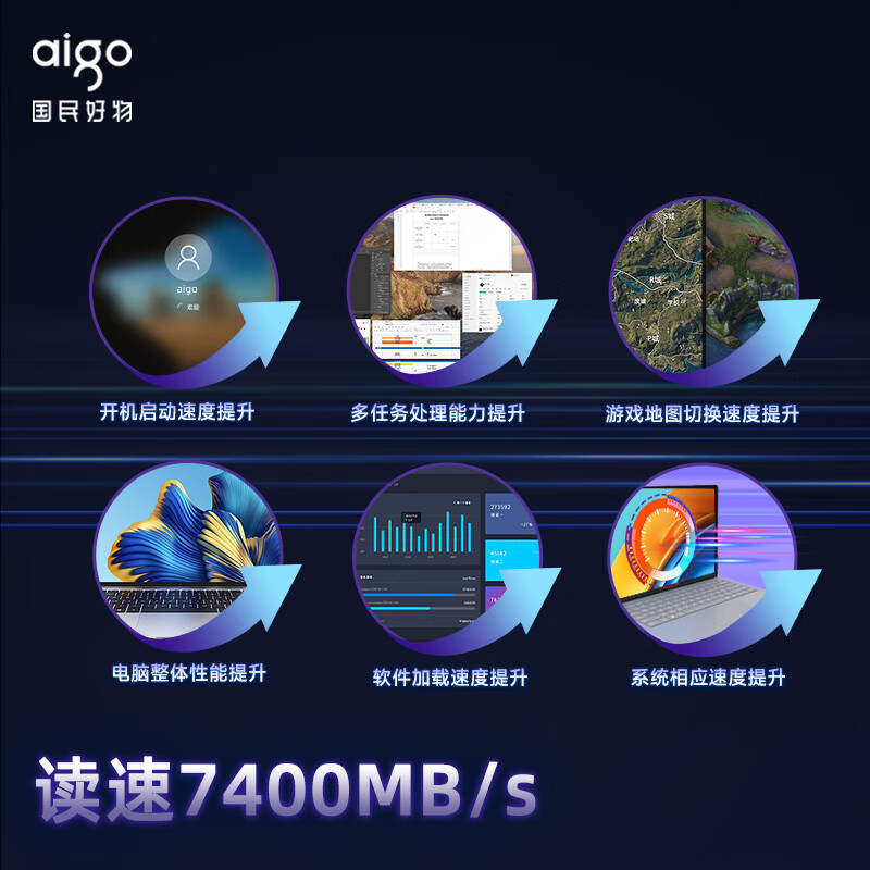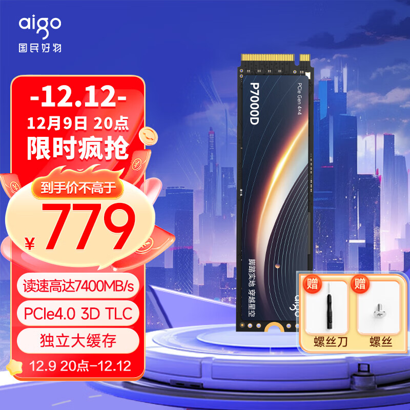 爱国者 (aigo)2TB SSD固态硬盘 M.2接口(NVMe协议PCIe4.0x4)长江存储晶圆P7000D 读速7400MB/s PS5笔记本适用价格:779.00元!