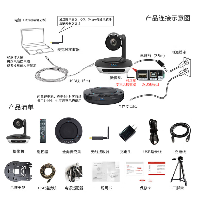 润普Runpu视频会议标准集成套餐适用20-60平米高清会议摄像头摄像机无线会议全向麦克风/软件 RP-W30价格:2980.00元!