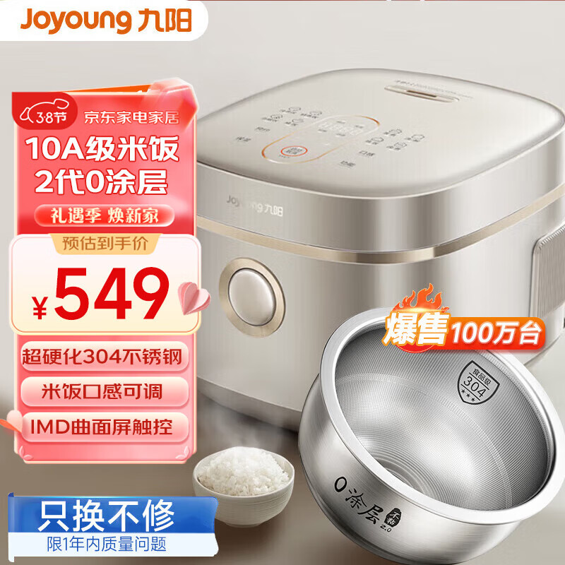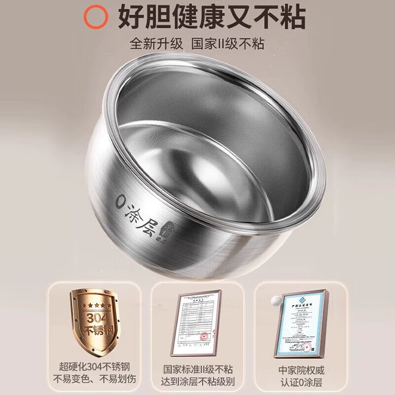 九阳【2代0涂层】智能电饭煲304不锈钢内胆电饭锅无涂层不粘多功能预约4升5A级好米饭蒸饭锅3-8人40N3S 【2代0涂层】健康不粘40N3S- 4L价格:899.00元!