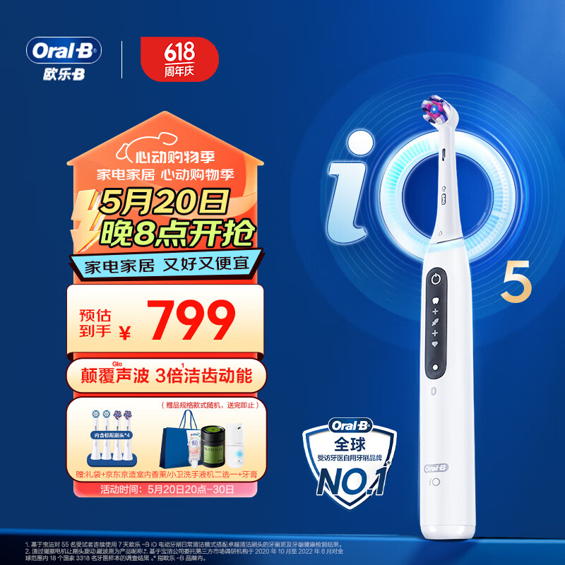 欧乐B成人电动牙刷成人iO5智能净白刷iO系列圆头微震科技 深度清洁送男友送女友送礼生日礼物520礼物价格:949.00元!