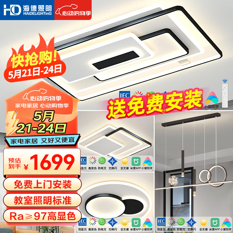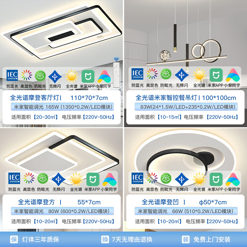 HD全光谱米家智能吸顶灯 led大客厅卧室餐厅防蓝光防频闪灯具套餐C价格:2199.00元!