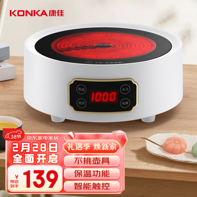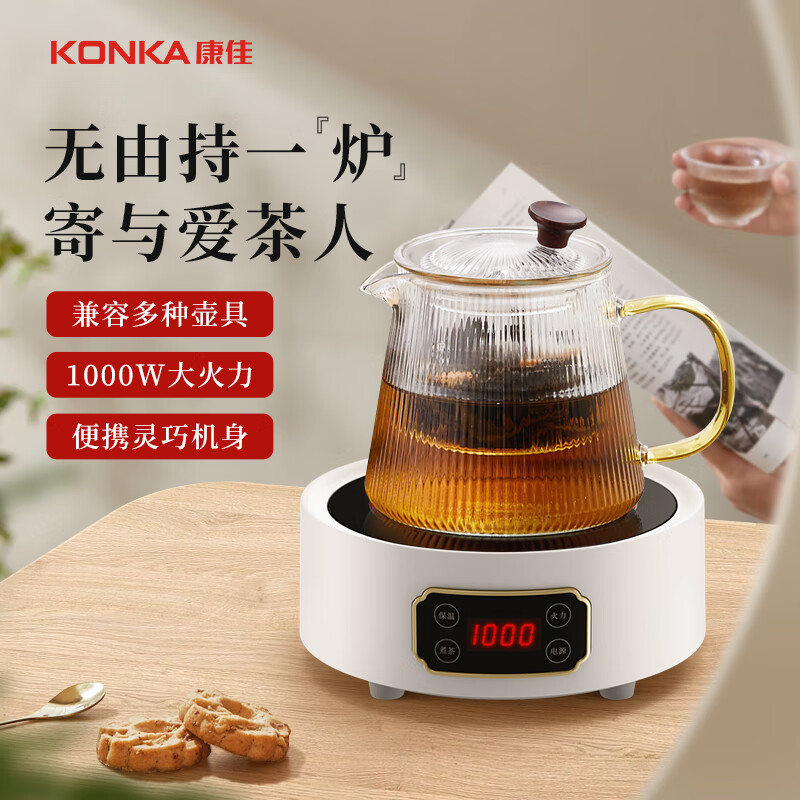 康佳(KONKA)电陶炉 家用智能电陶茶炉迷你煮茶炉小型电茶炉不挑壶泡茶煮茶器 养生茶壶 KDTL-1001E-W价格:139.00元!