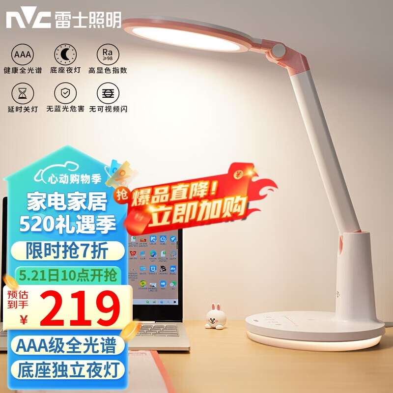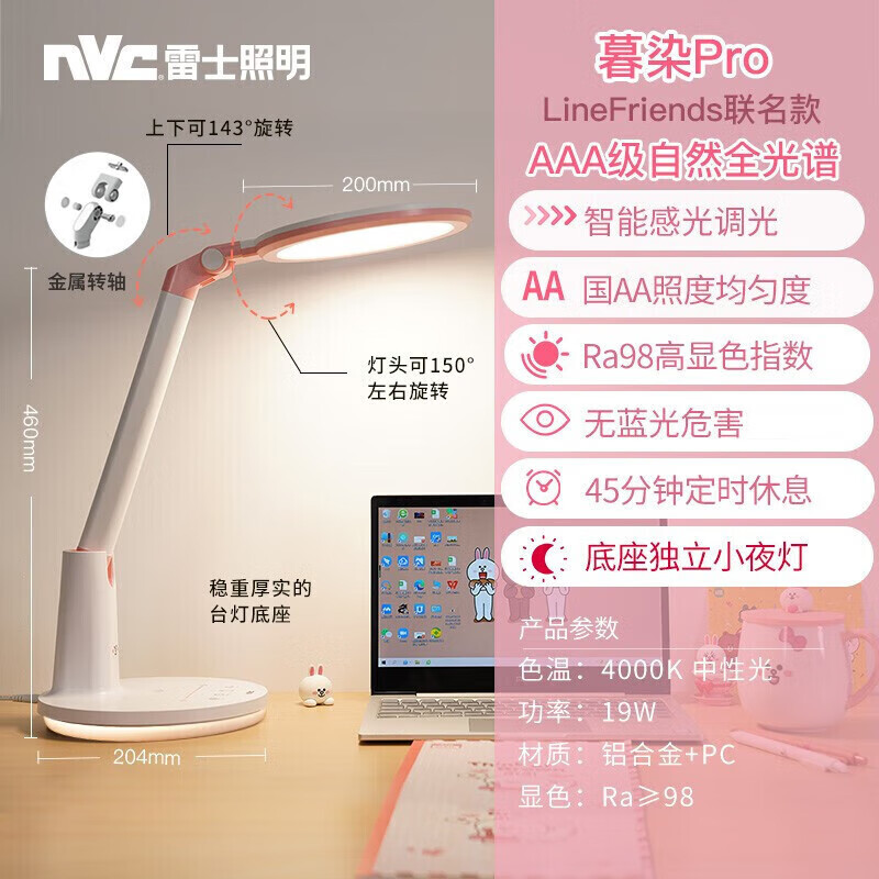雷士(NVC)护眼台灯Linefriends联名款学生学习AA级阅读写字作业儿童-可妮兔价格:311.00元!