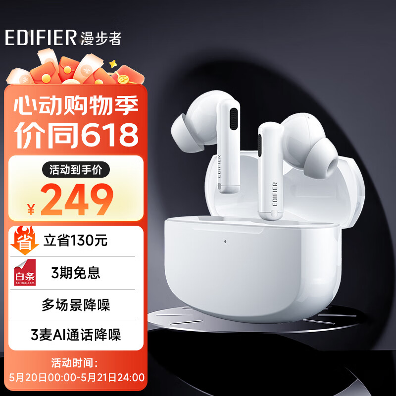 漫步者(EDIFIER)Lolli Pro2 真无线主动降噪蓝牙耳机 金标认证 蓝牙5.3 适用苹果华为小米 白色 圣诞礼物价格:249.00元!