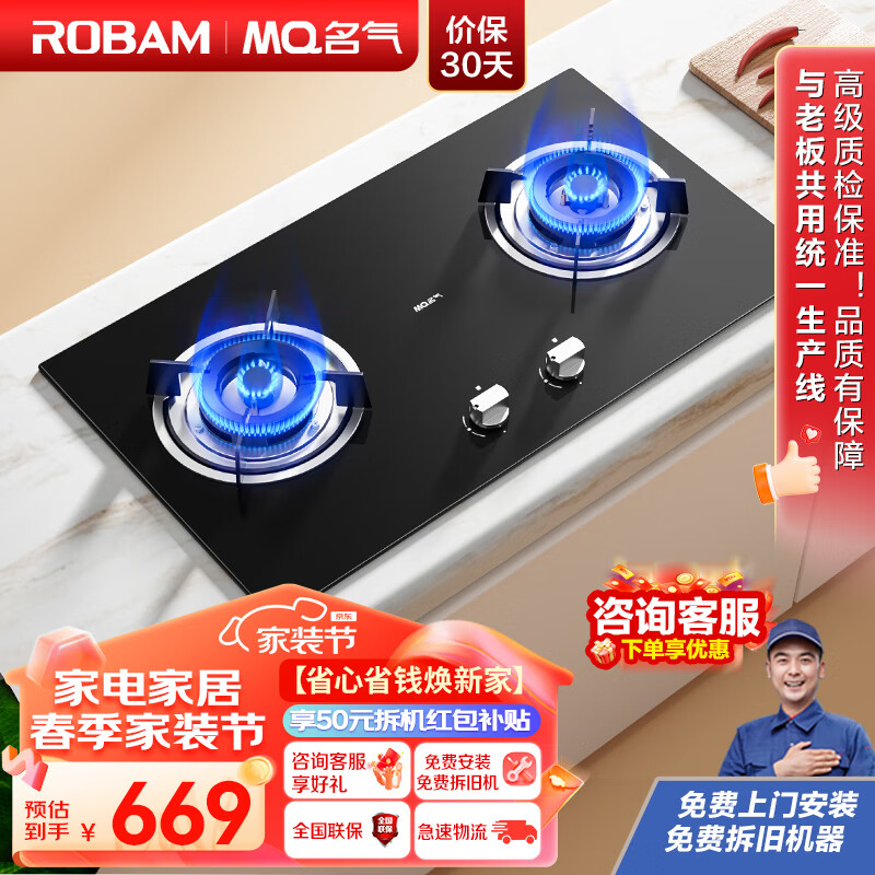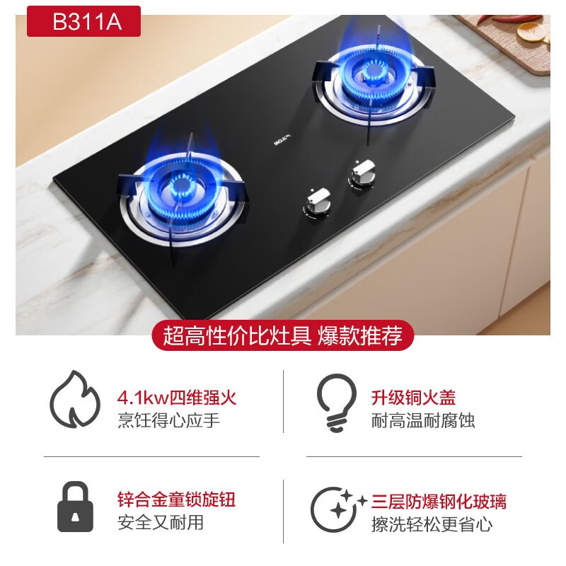 名气(MQ)老板燃气灶 天然气灶双灶家用猛火灶4.1KW嵌入式台式 B311A天然气灶价格:649.00元!