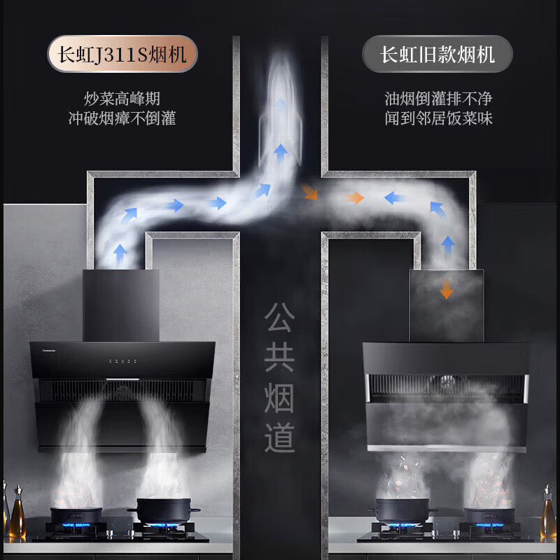 长虹(CHANGHONG)侧吸油烟机21m3爆炒大吸力 自动清洗手势控制 900宽域拢烟 5.2kW猛火天燃气灶 烟灶套装J311S+CC37价格:1999.00元!
