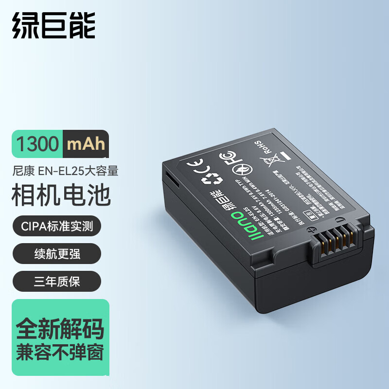 绿巨能(llano)尼康EN-EL25电池Zfc相机电池Z30/Z50/Z系列微单相机备用电池配件价格:199.00元!