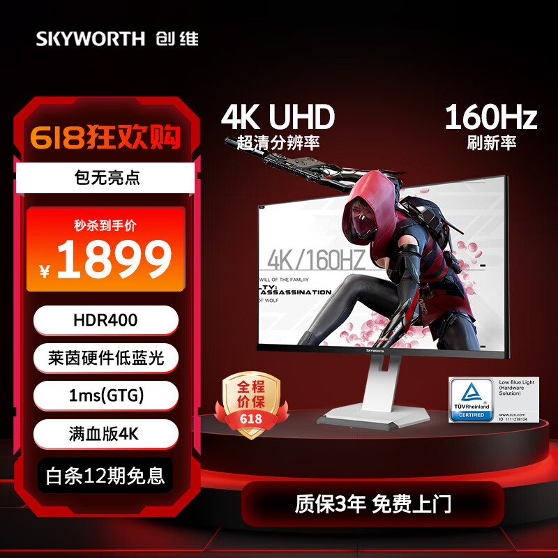 创维 27英寸 显示器 4K 原生160Hz GTG 1MS 10.7亿色数 HDR400 防蓝光 旋转升降 电竞显示器 F27G10U价格:1898.00元!
