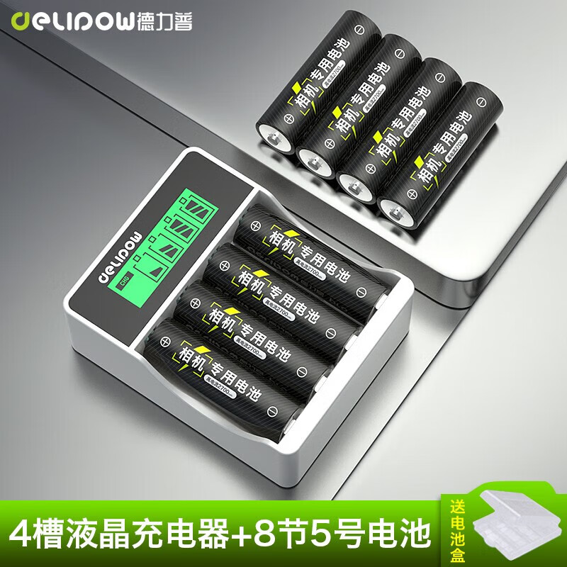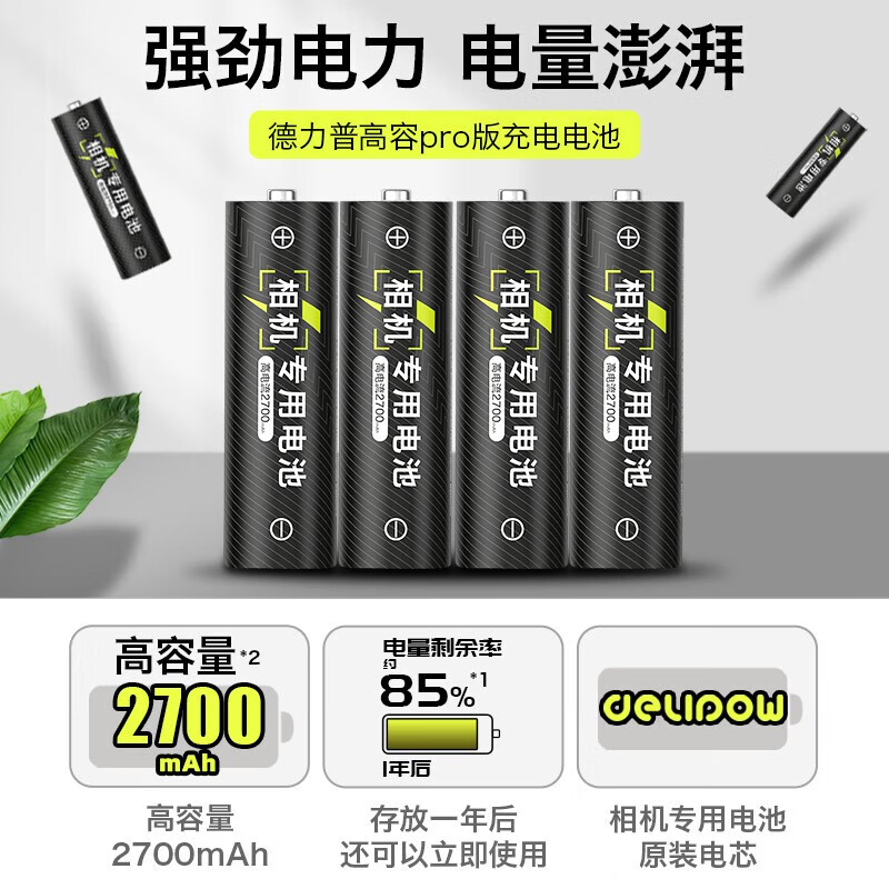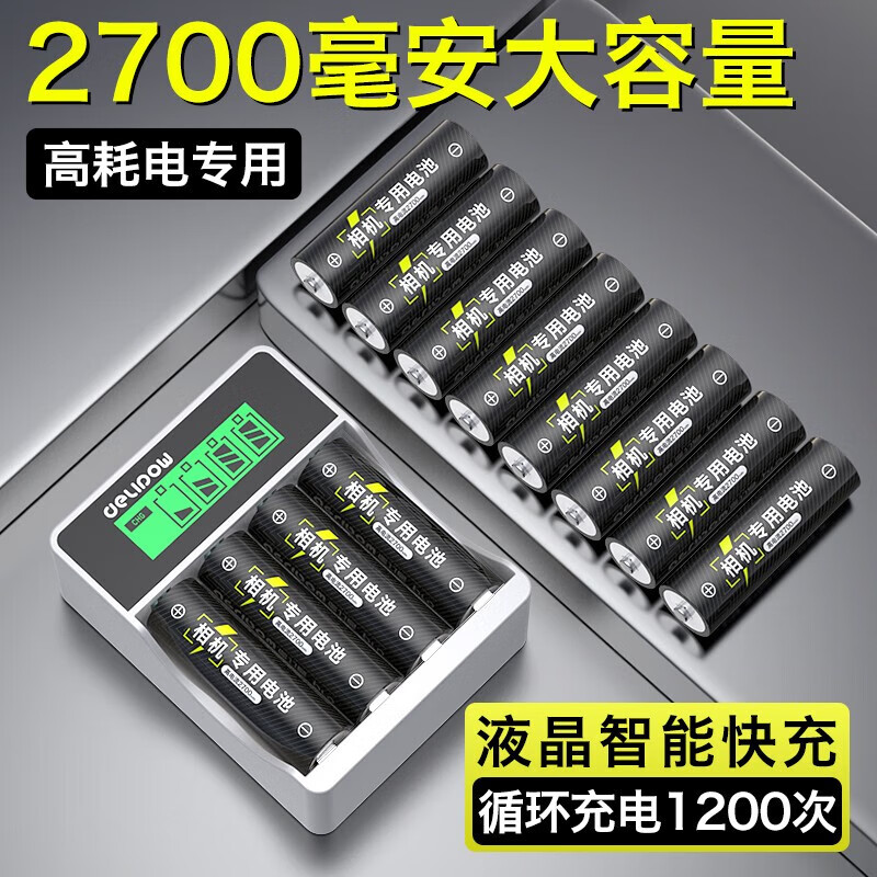 德力普(Delipow)充电电池 5号电池大容量2700mAh配充电器套装 KTV话筒/单反相机闪光灯专用价格:120.00元!
