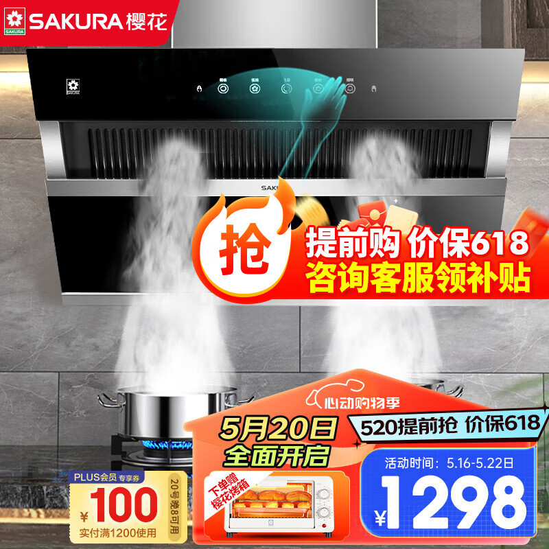 樱花(SAKURA)抽油烟机挥手即控家用侧吸式吸油烟机20立方大吸力厨房油烟机免拆自动清洗挥手感应开关 单烟机CXW-360-2706价格:1499.00元!