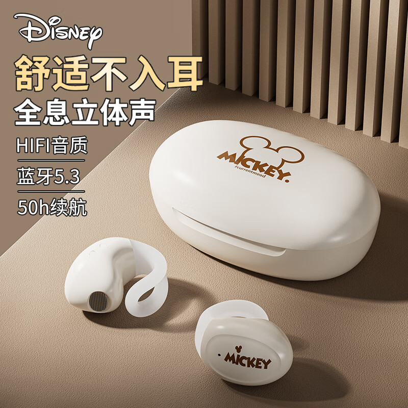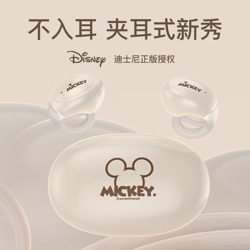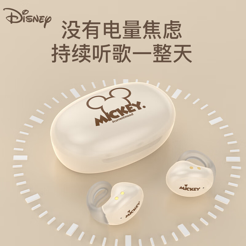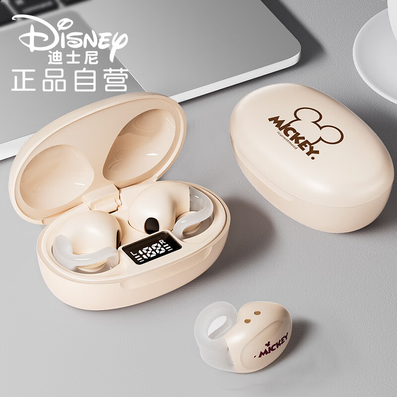 迪士尼(DISNEY)【新式夹耳】蓝牙耳机开放式骨传导概念真无线不入耳挂耳跑步迷你通话降噪游戏-TL136米色米奇价格:109.00元!