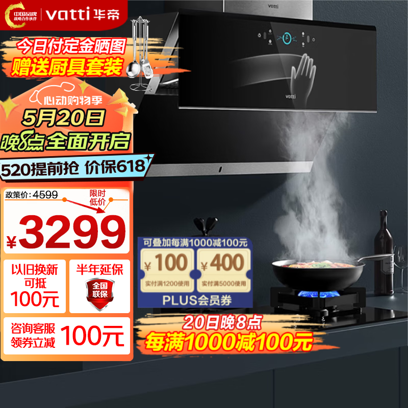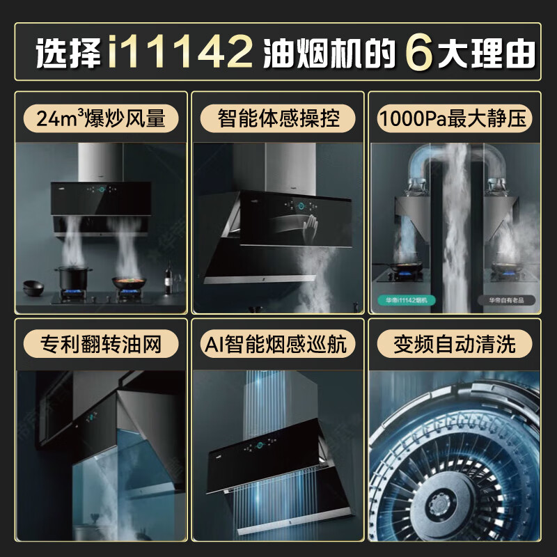 华帝(VATTI)油烟机灶具套装华帝官方顶侧双吸抽油烟机家用 24立方爆炒风量 挥手自动洗 变频烟感巡航 i11142 月销百万烟灶(142+5.0kW可调节73B灶)价格:3999.00元!