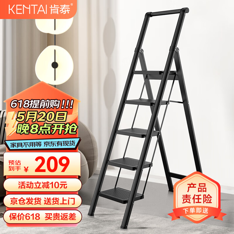 肯泰(KENTAI)梯子家用人字梯折叠伸缩楼梯加厚碳钢加宽踏板工程铁梯F4-H5价格:349.00元!