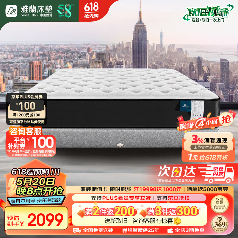 雅兰50周年纪念款 软硬适中独袋弹簧乳胶床垫 蘭朋友舒适2.0 1.5*2米价格:2699.00元!