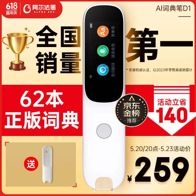 阿尔法蛋AI词典笔D1 点读笔英语学习翻译神器 翻译笔扫描笔 单词笔学习笔中小学生电子词典价格:259.00元!