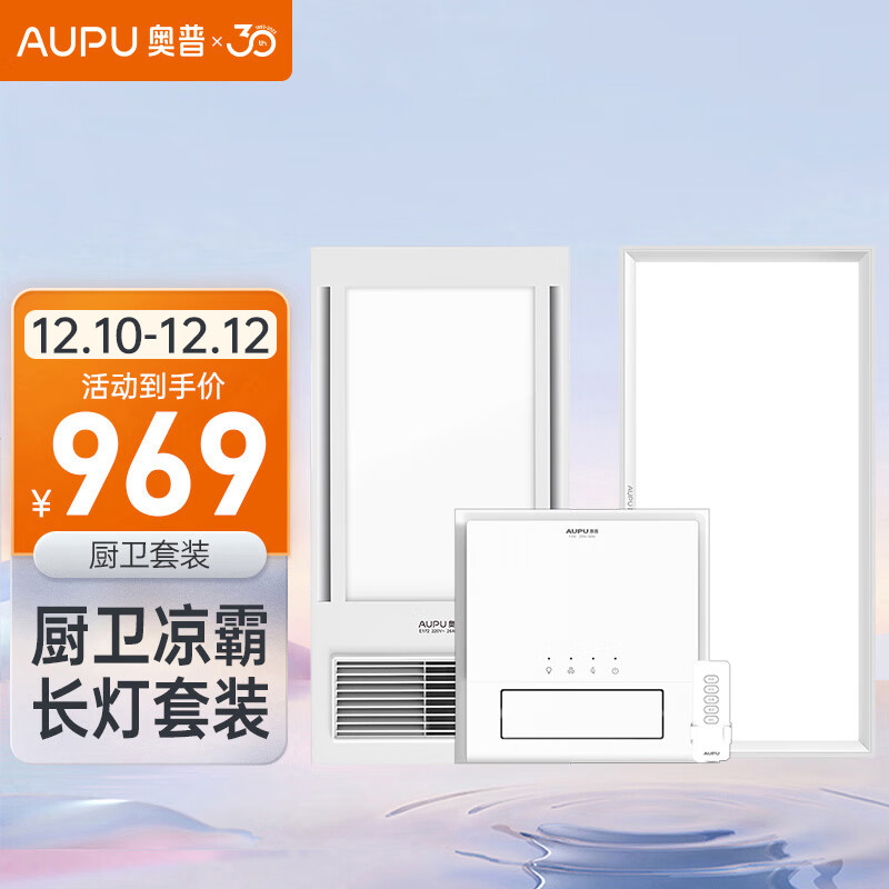奥普(AUPU)浴霸E172纤薄强弱风暖浴霸+遥控劲爽凉霸+长灯套装(附件形式)价格:1199.00元!