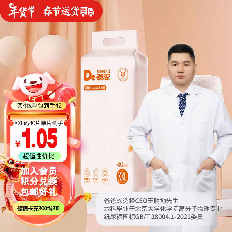 爸爸的选择极Daddy's Choice薄2.0拉拉裤XXL40片(15-20kg)特大号价格:50.00元!