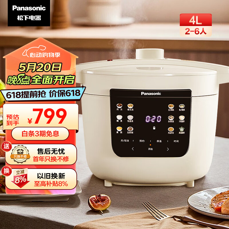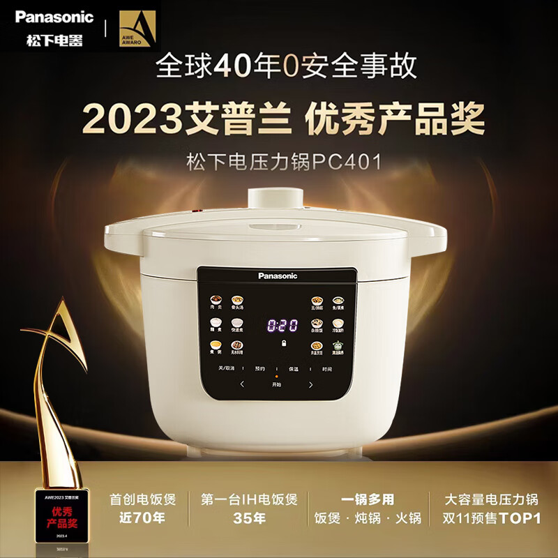 松下(Panasonic)4L电锅 焗鲜锅 开盖火锅料理 智能高压锅电饭锅 24h人性化预约 NF-PC401-L价格:569.00元!