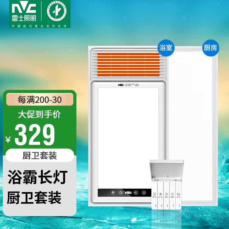 雷士(NVC)风暖浴霸基础款双电机大功率速热取暖器浴室暖风机厨卫面板灯套餐价格:419.00元!