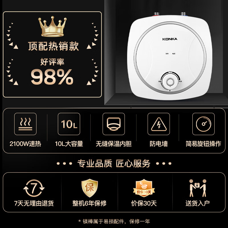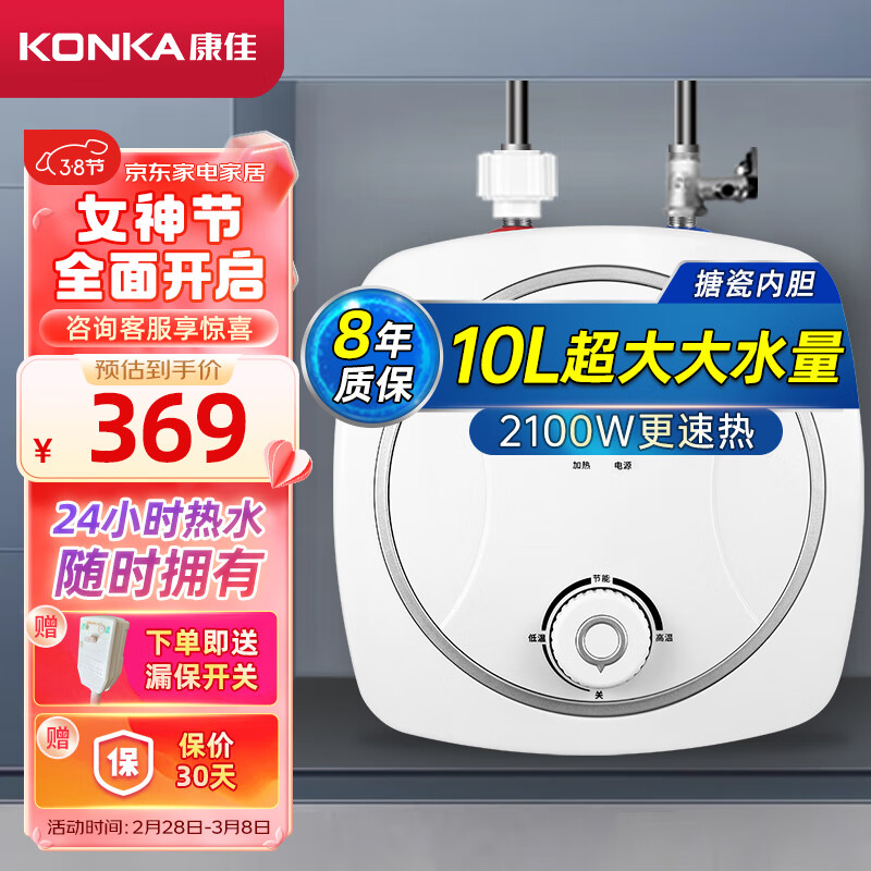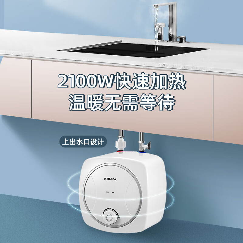 康佳(KONKA)小厨宝10升超大水量上出水 家用2100W速热厨房电热水器 台下安装双重防漏电DSZF-KW03(自行安装)价格:369.00元!