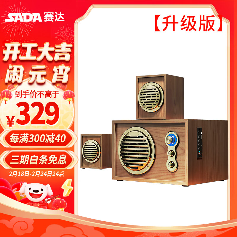 SADA Q4蓝牙音响台式电脑低音炮多媒体2.1木质HIFI超重低音家庭复古木质多媒体音箱价格:329.00元!