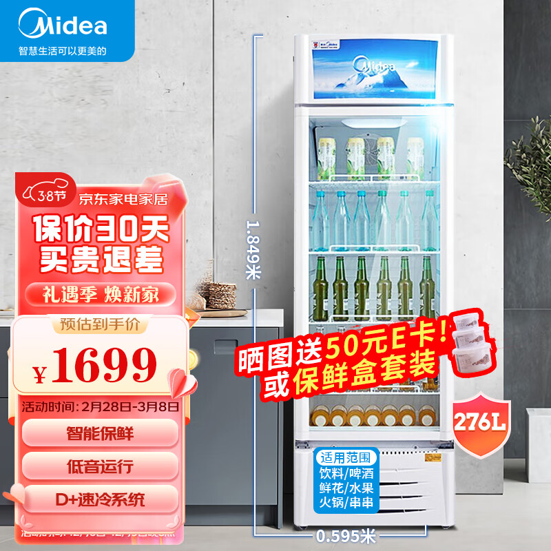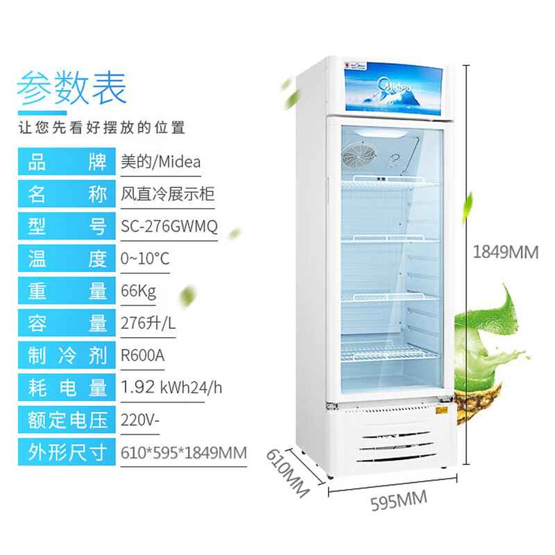 美的商用展示柜冷藏保鲜柜风幕柜饮料啤酒蛋糕水果保鲜柜 276升美的展示柜 SC-276GWMQ价格:1799.00元!