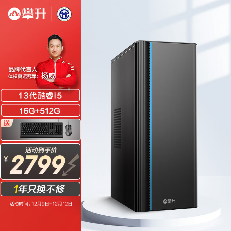 攀升 商睿3 酷睿i5设计师办公商用电脑主机(13代i5-13400 16G 512GSSD Type-C WiFi 正版Win11)价格:2799.00元!