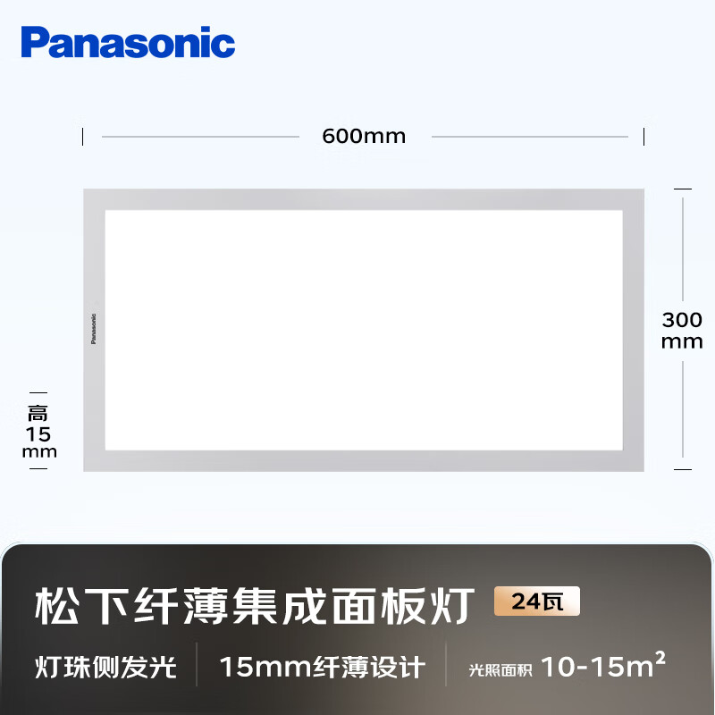 松下(Panasonic)集成吊顶灯 led厨房灯卫生间平板灯嵌入式面板灯 24瓦300x600价格:328.00元!