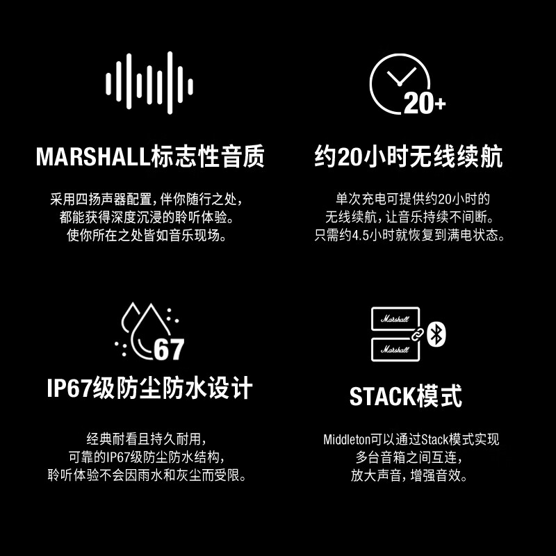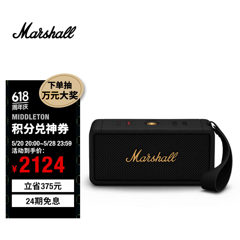 MARSHALL(马歇尔)MIDDLETON音箱便携式无线蓝牙家用户外防水音响 黑金色价格:2124.00元!
