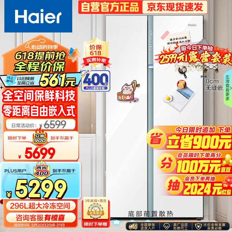 海尔(Haier)白巧系列561L全空间保鲜大冷冻电冰箱家用一级能效变频对开双开门超薄零嵌入式BCD-561WLHSS14W9U1价格:6599.00元!