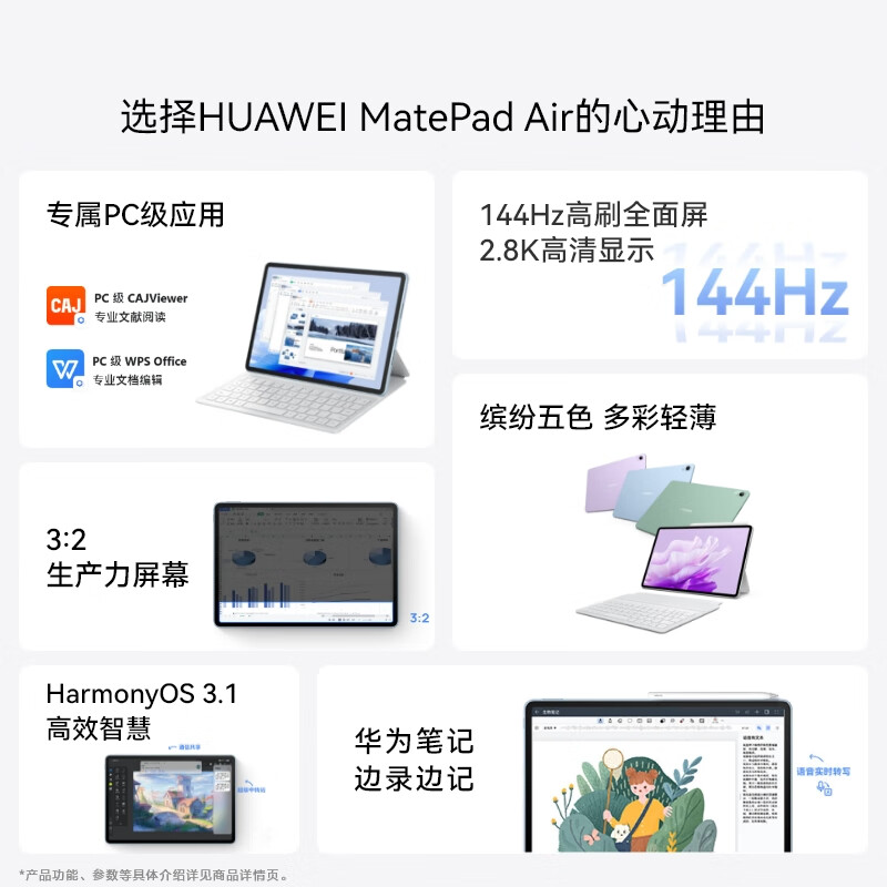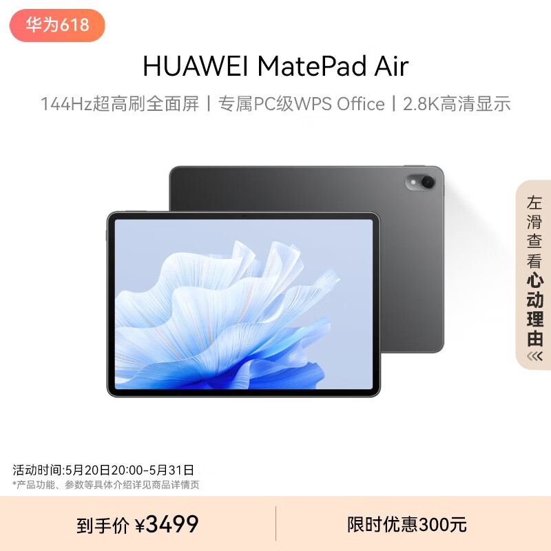 HUAWEI MatePad Air 华为平板电脑11.5英寸144Hz护眼屏2.8K超清办公学习娱乐 12+512GB 曜石黑价格:3499.00元!