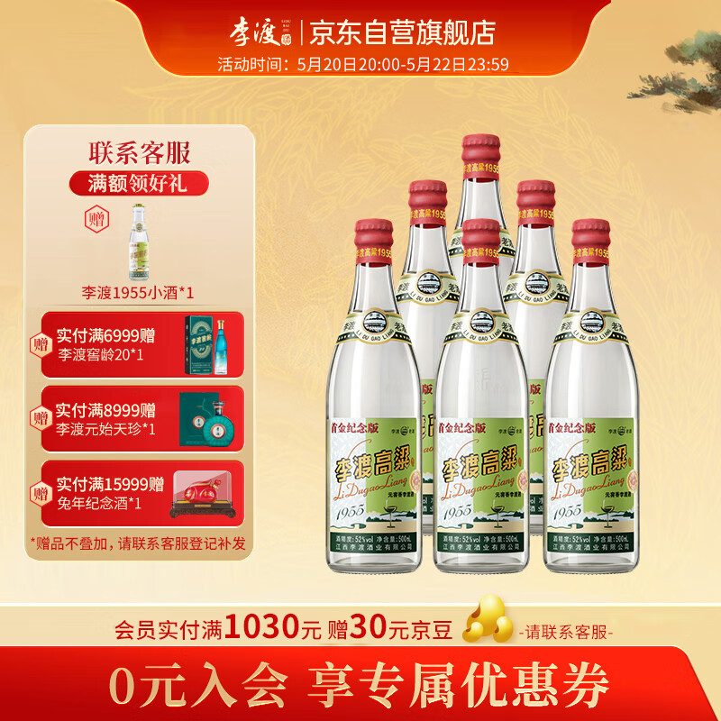 李渡 高粱1955 元窖香白酒 52度500ml*6瓶 整箱 首金纪念版 江西特产价格:5860.00元!