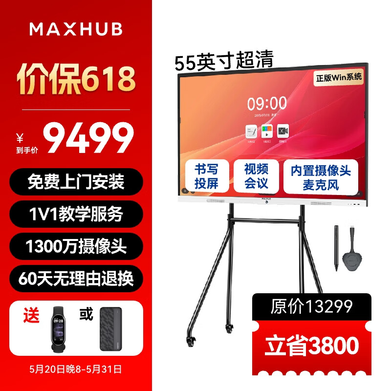 maxhub视频会议平板一体机会议电视教学智慧屏摄像头麦克风触屏白板新锐Pro55Win10+简约支架+传屏+笔价格:11349.00元!