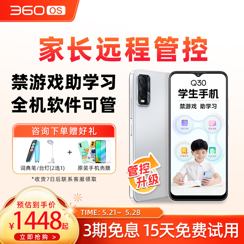 360 OS学生手机 初中儿童小学高中青少年 学习网课专用 家长可控 Q30冰晶白 6G+128G 管控+学习版价格:1598.00元!