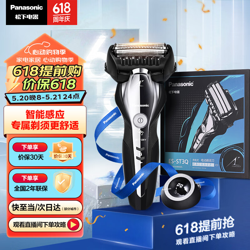 松下(Panasonic)经典5系剃须刀刮胡刀电动往复式磁悬浮马达进口三刀头生日礼物男士情人节送男友送父亲ST3Q黑价格:369.00元!
