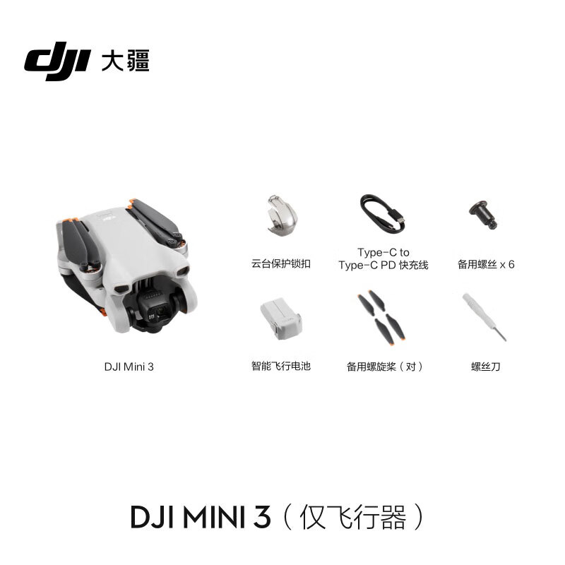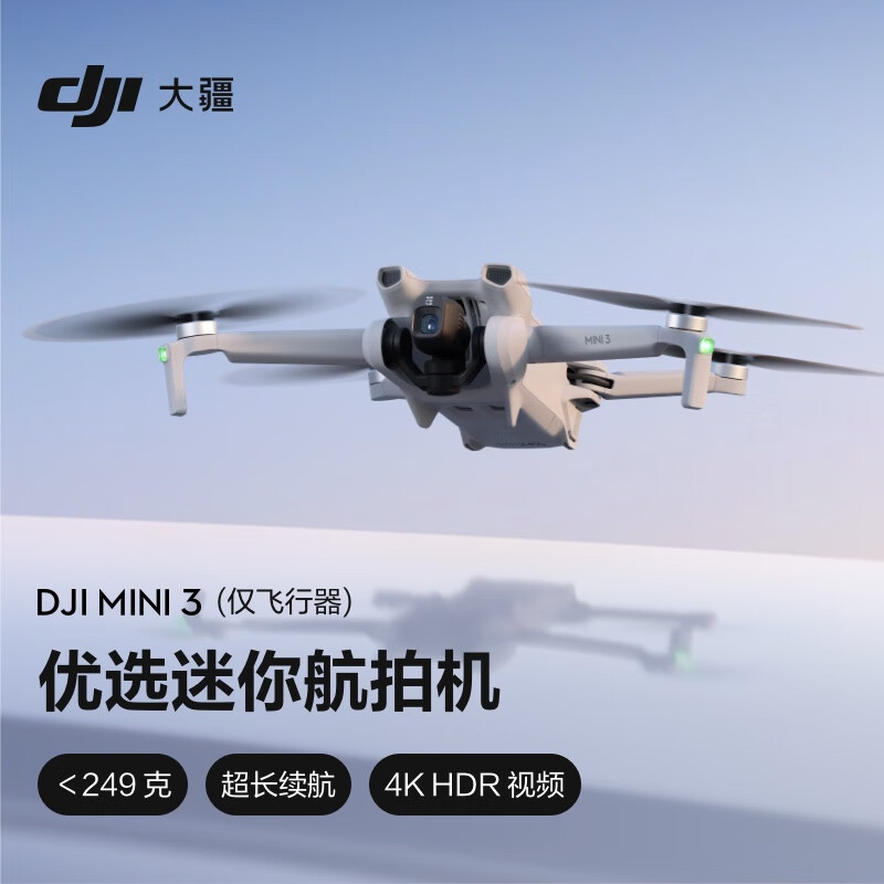 大疆 DJI Mini 3(仅飞行器) 优选迷你航拍机 智能高清拍摄无人机 小型遥控飞机+随心换1年版实体卡价格:2216.00元!