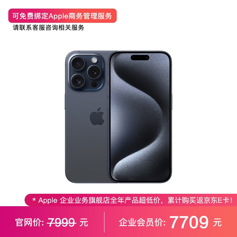 Apple iPhone 15 Pro 128GB 蓝色钛金属A3104手机 支持移动联通电信5G MTQ73CH/A【企业客户专享】价格:7999.00元!