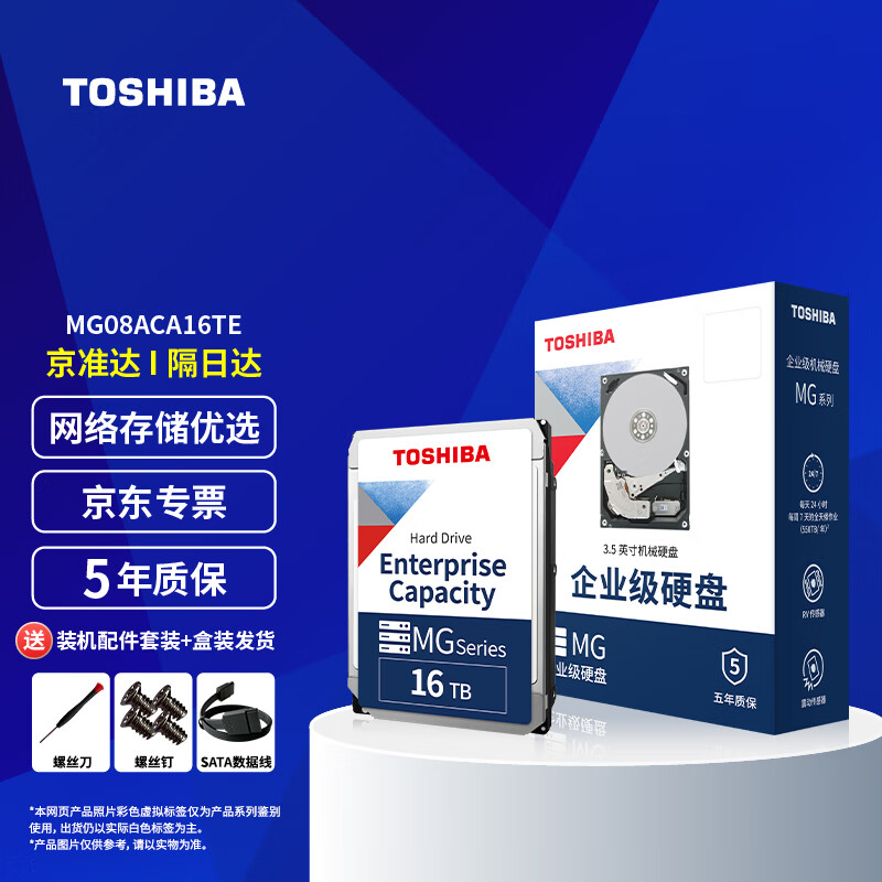 东芝(TOSHIBA) 企业级硬盘 垂直式CMR 网络存储 3.5英寸机械硬盘 SATA接口 16TB【7200转】MG08ACA16TE价格:2199.00元!