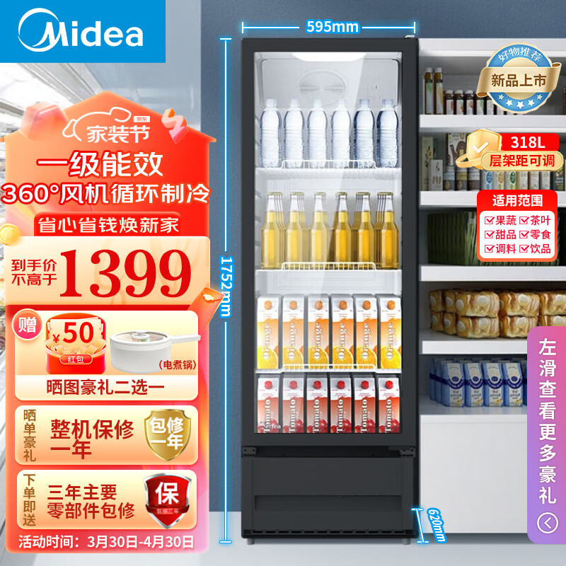 美的(Midea)展示柜 318升立式玻璃单门商用冷柜陈列柜 超市便利店餐馆饮料啤酒保鲜冷藏冰箱 SC-318GM(EB)价格:1499.00元!