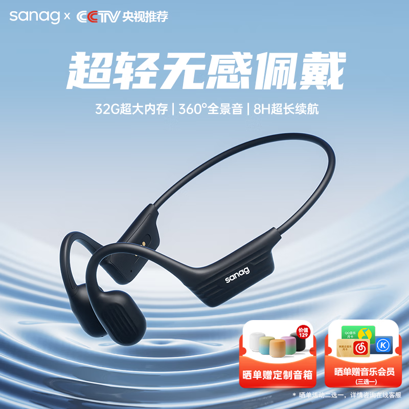 SANAG塞那【央视甄选丨520礼物】骨传导耳机升级气传导运动耳机 开放式蓝牙耳机 户外跑步防水长续航价格:229.00元!