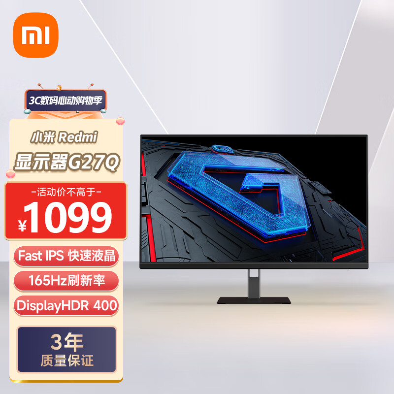 小米 Redmi 27英寸2K电竞显示器 G27Q Fast IPS 165Hz刷新率 HDR400 Type-C接口 电脑办公显示器价格:1099.00元!