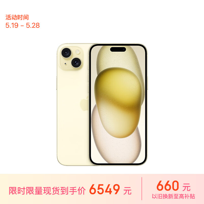Apple/苹果 iPhone 15 Plus (A3096) 256GB 黄色支持移动联通电信5G 双卡双待手机价格:7149.00元!