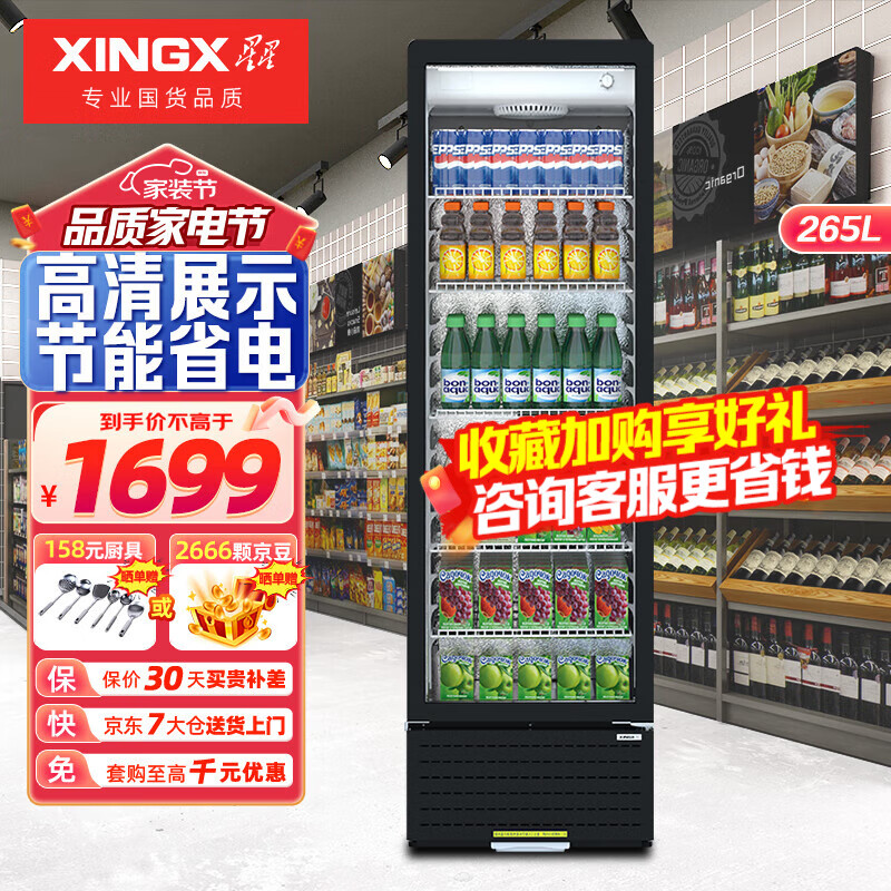 星星(XINGX)展示柜冷藏保鲜柜饮料展示柜单门商用立式冰柜1级能效超市便利店陈列柜啤酒水果柜 风冷丨1级能效丨265L丨280WYPE价格:1699.00元!
